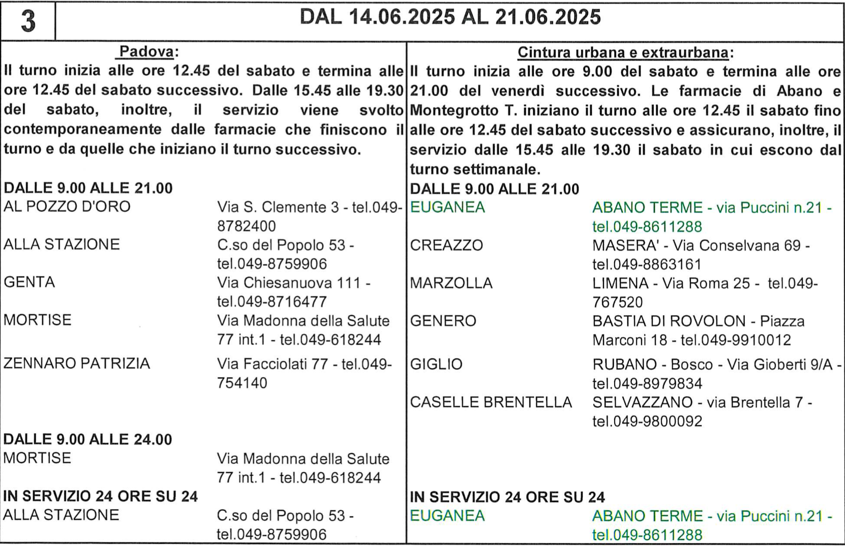 Da sabato 14 giugno 2025 a sabato 21 giugno 2025