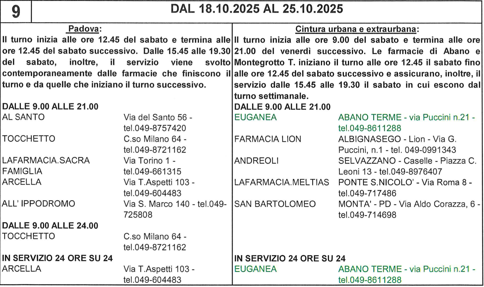 Da sabato 18 ottobre 2025 a sabato 25 ottobre 2025