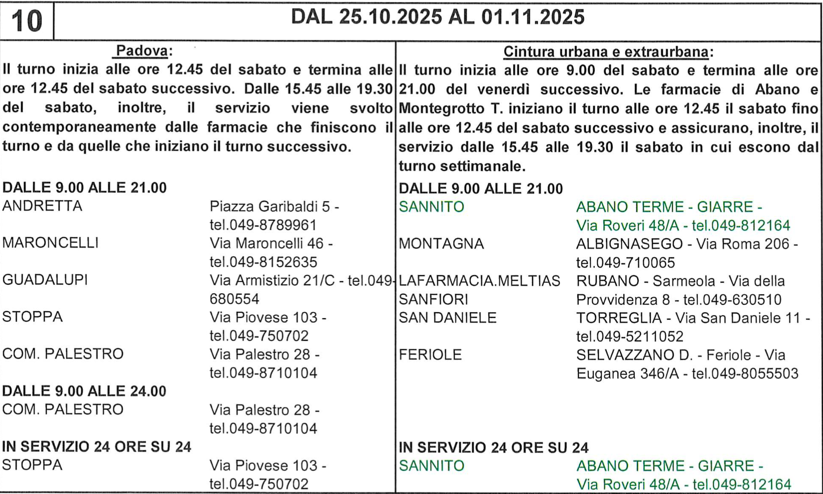Da sabato 25 ottobre 2025 a sabato 01 novembre 2025