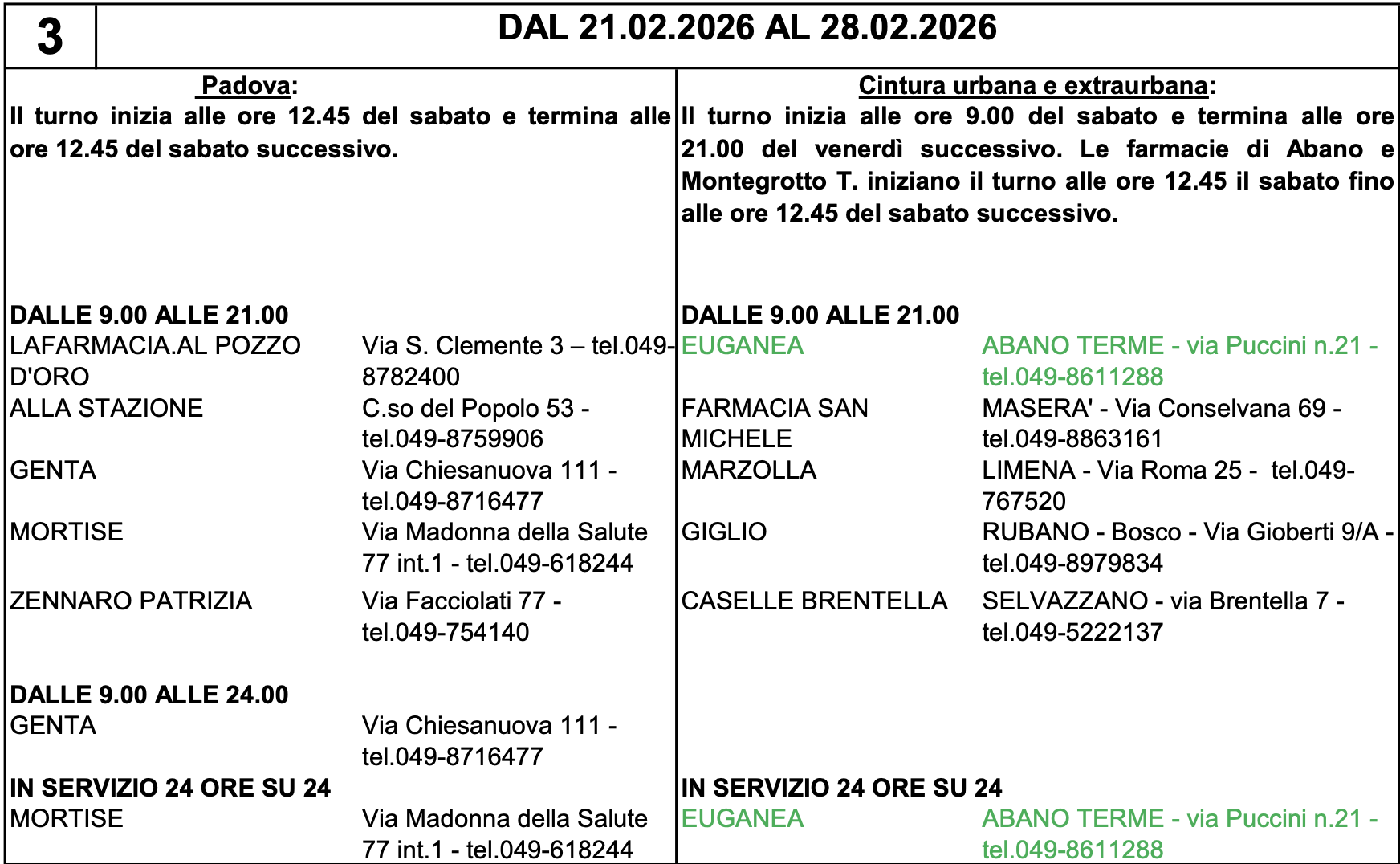 Da sabato 21 febbraio 2026 a sabato 28 febbraio 2026